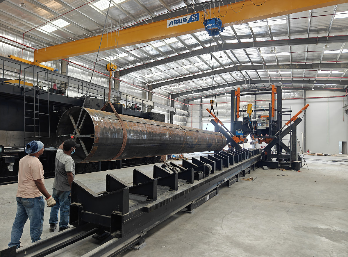 HIGHMAST POLE AND MONOPOLE SHUT-WELDING MACHINE, het is geschikt voor een schelp of twee schelpen type veelhoekige en cirkel conische paal. het is automatische laslijn,de portierconstructie is vast en heeft een lassysteemDe hydraulische cilinder duwt het klemwiel om de paal te sluiten en tegelijkertijd te lassen.