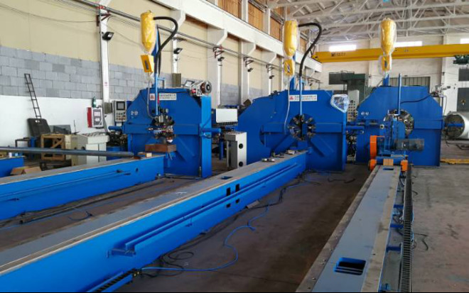 LICHT SLUITEN-LAST DE MACHINEmodel VAN POOL: 500/12000, het is geschikt voor ééndelig veelhoekig type en cirkel spitse lichte pool. het is automatische lassenlijn, kan de dolly met snelheids regelbare motor de lichte pool van klein eind aan kop van de drijfstang trekken, de hydraulische cilinder door mechanische ketting, de duw van het wormwiel het het vastklemmen wiel om de pool te sluiten en tegelijk het lassen te doen.