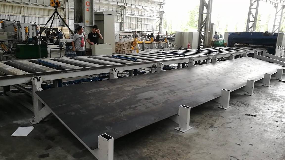 WWanneer de plaat de voorkant van de snijmachine bereikt, wordt de plaat gestopt en stijgt dit apparaat.het bord, zodat de dolly de plaat kan vastklemmen en verplaatsen.