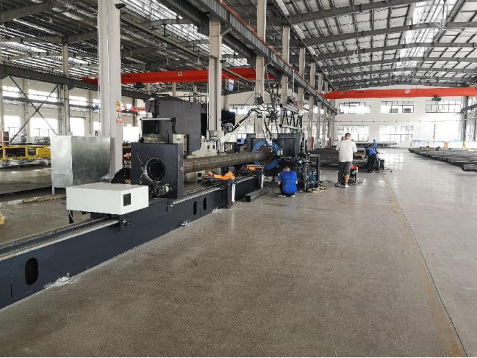 Het lassensysteem wordt toegepast voor lichte het lassenproductie van de poolgrondplaat. Door communicatie in real time tussen robot en lassenmacht, volgens verschillende lassenpositie om de naad van het goede kwaliteitslassen te bereiken,