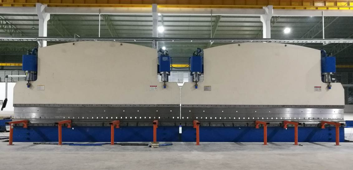 De persbuigmachine neemt een elektrisch-hydraulische proportionele klep aan om de synchronisatie van beide cilinders te garanderen. De proportionele klep is gemaakt door BOSCH-Rexroth met zeer goede prestaties, zoals kleine wrijving tussen mechanische actieparen, fijne elektronische versterker en elektromagneet met hoge controlekracht en continue werking. Er zijn twee rasterweergaves aan beide zijden van de machine om continu het signaal van de positie van de ram te verkrijgen en het signaal terug te voeren naar het besturingssysteem, dan zal het besturingssysteem de elektrisch-hydraulische klep aansturen om twee cilinders te synchroniseren op één machine.